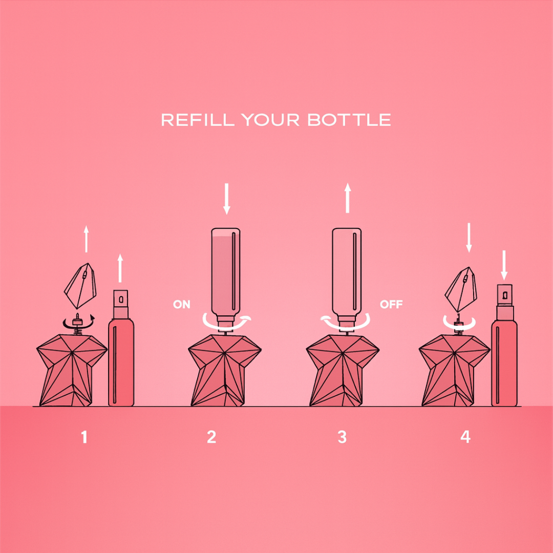 As with all Mugler creations, spray a cloud in the air and then cross it to let the fragrance settle on hair and clothes. complete this gesture whenever you want, by applying the fragrance to the pulse points: in the hollow of your wrist, at the top of the neck, or the bend of the arm.